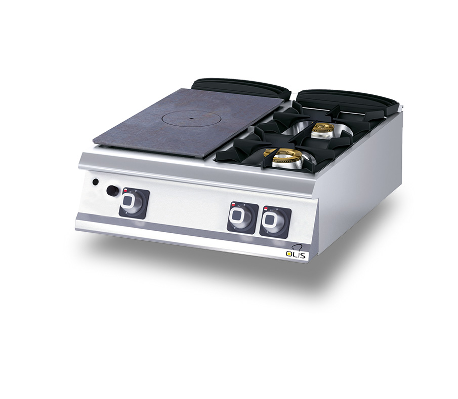 Range, gas/electric, 800mm W x 730mm D, (4) nickel-plated open burners with double-crown spreader, cast-iron grates, removable stainless steel bowls, manual controls, electric oven with stainless steel radiant plate, insulated door, stainless steel exterior, adjustable feet, 380-415v/50/60, IPX4