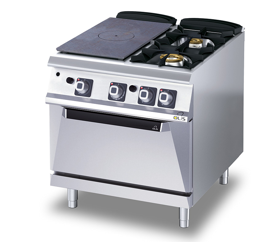 Range, gas/electric, 1200mm W x 730mm D, (6) nickel-plated open burners with double-crown spreader, cast-iron grates, removable stainless steel bowls, manual controls, electric oven with stainless steel radiant plate, insulated door, storage cabinet, stainless steel exterior, adjustable feet, 380-415v/50/60, IPX4